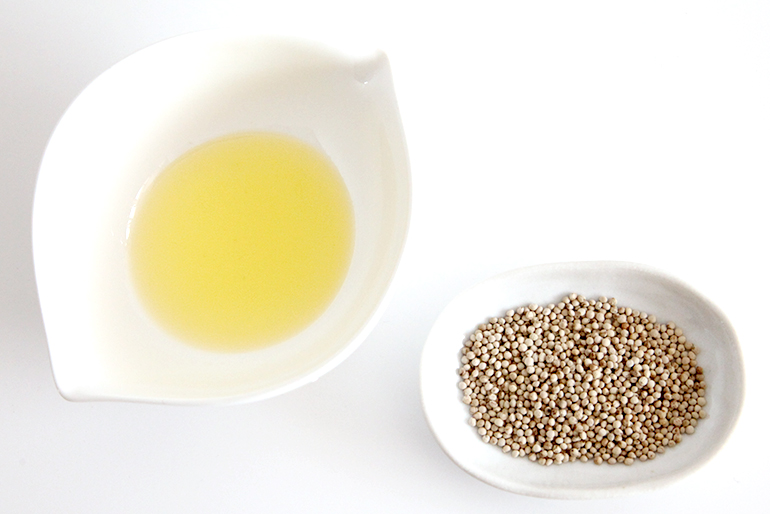 澄んだ黄金色が美しい 高度な技術で搾油した「えごまオイル」