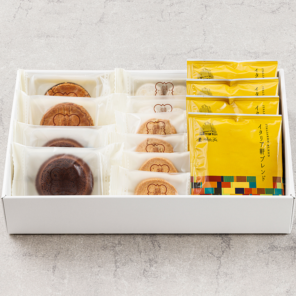 「ホテル イタリア軒」のパティシエ監修の焼き菓子と、奥深い苦味とコクが魅力のドリップ珈琲を詰め合わせました。高級感のある化粧箱入りで、贈答品にもおすすめ。老舗ホテル自慢の味をご賞味ください。