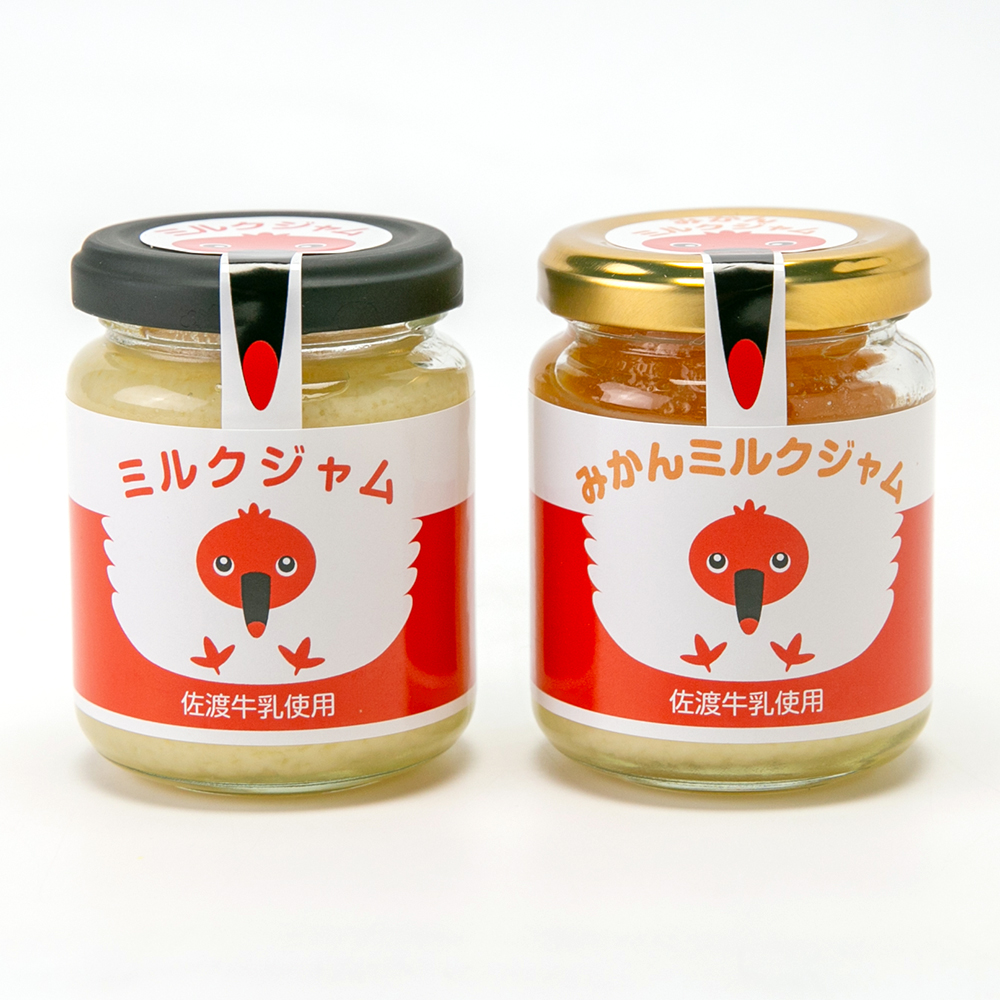 濃厚な佐渡牛乳を使った、まろやかな口あたりの「ミルクジャム」。コク深い「ミルク」と、佐渡みかんが爽やかに香る「みかんミルク」の2種類をお届け。ギフトにもぴったりな、可愛らしいジャムです。