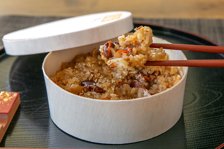 家庭で作ると意外と手間がかかるおこわ。「家に常備しておけて、急な催事などで必要になった時に、いつでも美味しく食べられるおこわがあったら嬉しい」という声を受けて、三輪さんはこの2種類のおこわを作ったのだそう。