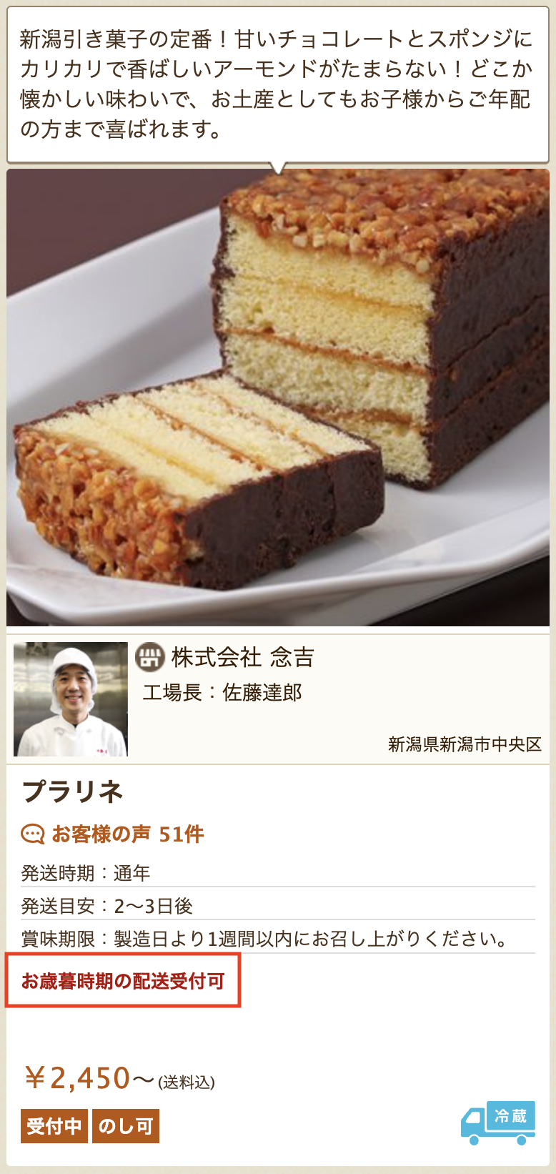 対象商品には「お歳暮時期の配送受付可」と表示されます。