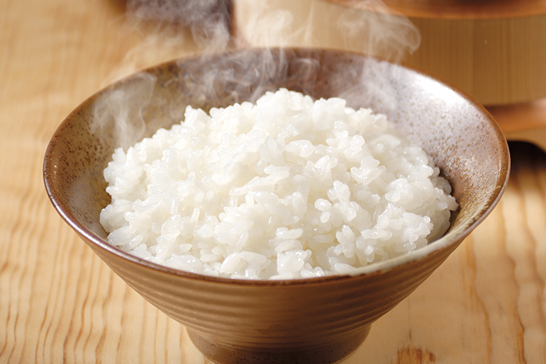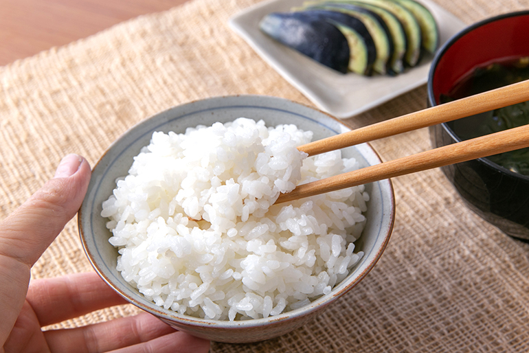炊きたてごはんの良い香り〜。お茶碗に盛り付けたら、いただきま〜す!ぱくっ……。もちもちとした食感で、甘みが濃厚!噛みしめるごとに、お米の旨味が広がります。さっぱりとした漬物や、やさしい味わいの味噌汁とも相性抜群。どんな料理にも合いそうです。