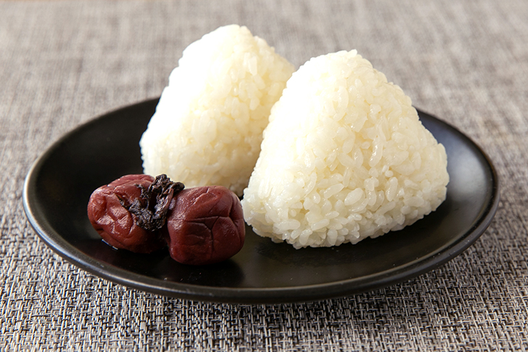 梅干しと一緒に食べると……。うわ〜。お米が甘い!すっぱさと塩気でお米の甘みが一層際立ちます。素朴ながらもお米本来の美味しさを堪能できる組み合わせですね。