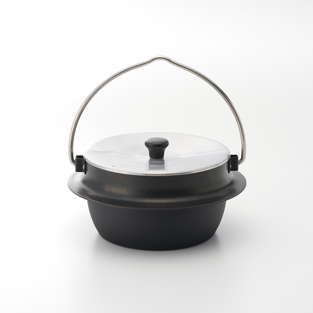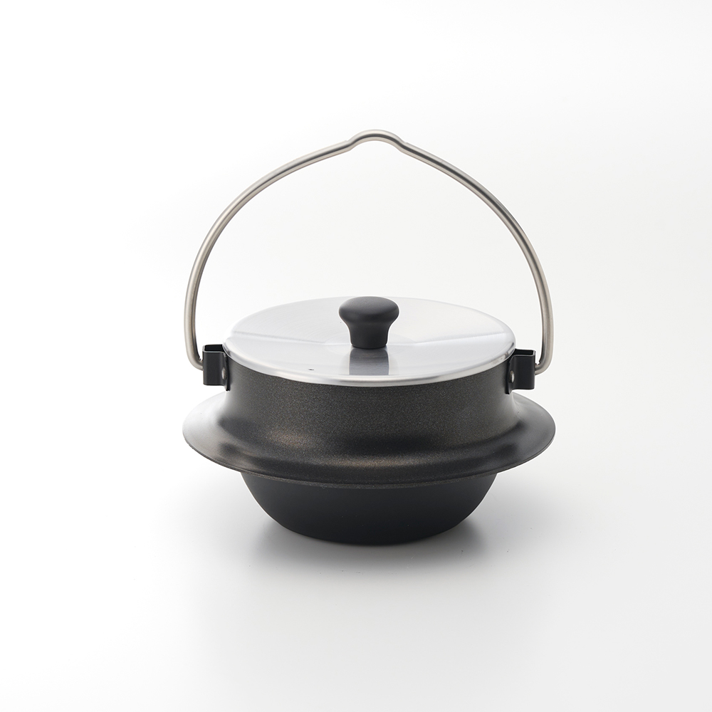 燕は金属加工が盛んなものづくりの街。特にカトラリーや調理器具など、キッチンアイテムのデザイン性と機能性が絶賛されています。ご紹介する羽釜の最大の魅力は、一般的な炊飯器に比べて、早く、美味しく炊けること。底の丸みにより生まれる熱対流で、お米が一粒一粒ふっくら仕上げ!平たい羽根が熱を逃さないため、素早く炊き上げることができます。家庭で使える大サイズ(2合用)と、ソロキャンプにおすすめな小サイズ(1合用)をご用意しました。