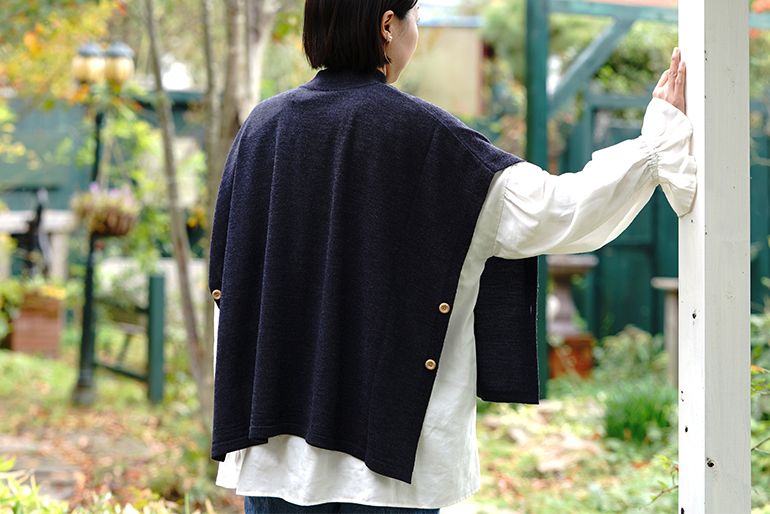 取材担当:渡邉オーストラリア産の最高級メリノウールを100%使用した、五泉ニットの「ポンチョ」。柔らかな肌触りと軽やかな着心地が魅力です。サイドのボタンで2通りの着方を楽しめますよ。カラーは3色展開!
