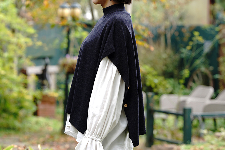 ふんわり軽やか!五泉ニットの「ハイネックウールポンチョ」