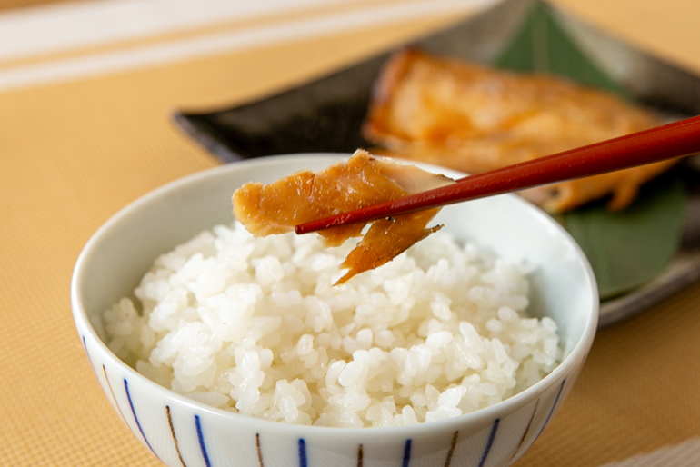 身がふっくらとしていて美味しそうですね~。ぱくり……。自然の力を借りて作った干物の味わいは、機械乾燥したものとはまったくの別物!旨味がギュッと詰まっています。しょうゆの甘じょっぱい味付けでご飯が進みますよ~!焼くだけで手軽に食べられるので、食卓の一品に重宝しますね。