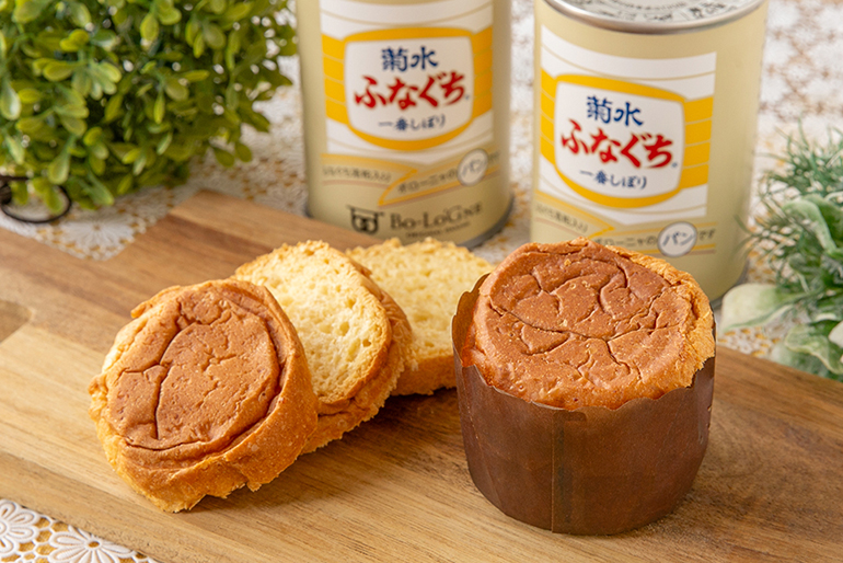 菊水酒造は、日本酒の魅力を身近に感じてもらうため、2020年、一風変わった商品を開発した。看板商品「菊水ふなぐち」の酒粕入りパン、「ふなぐち酒粕ブリオッシュ」だ。しかも、缶詰入りというのが珍しい。デニッシュ食パンで有名な「京都祇園ボローニャ」とコラボレーションしたパンである。酒粕を丁寧にブレンドすることで、上品な甘みが生まれ、しっとりとした食感に仕上がっている。缶詰入りのため、長期保存が可能。軽くて便利なことから、非常食やアウトドア用の食品としても人気を集めている。
