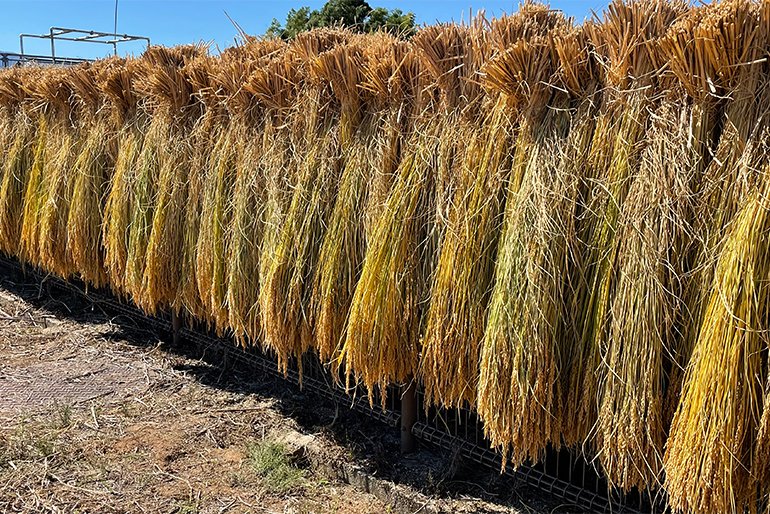 はざかけ米とは、稲刈り後の稲を、木材や竹で作った「はざ」にかけ、天日干ししたお米のこと。逆さに吊るされることで、稲葉に残った旨味が米粒に集まるため、風味が増すといわれています。今回ご紹介するのは、新発田市の就労支援施設のぞみふぁーむが生産するコシヒカリのはざかけ米。香り・食感・甘みが格別ですよ!