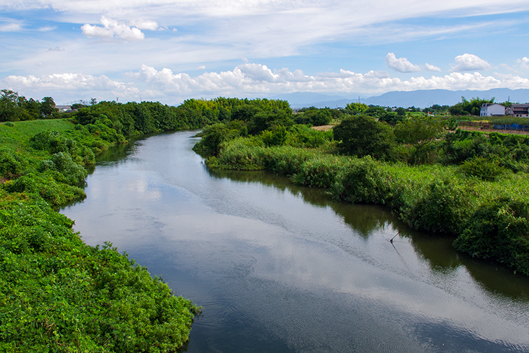 仙六農園の園地のすぐそばには、阿賀野川の支流・小阿賀野川が流れています。「福島や津川の方から流れてくる、雪解け水を豊富に含んでいるんです」と、9代目の佐藤さん。ミネラルたっぷりの水を吸収して育つため、おいしいお米に仕上がるのです。