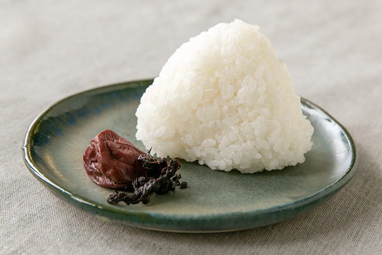 粒立ちが良く、ツヤツヤと輝いていますね~。手から伝わるおにぎりの温かさに、心がほっとします。ぱくり……。う~ん、もっちりとした弾力のある食感!食べごたえがありますね~。ほど良い塩気に、コシヒカリ本来のやさしい甘みと強い旨味が絶妙に合います。