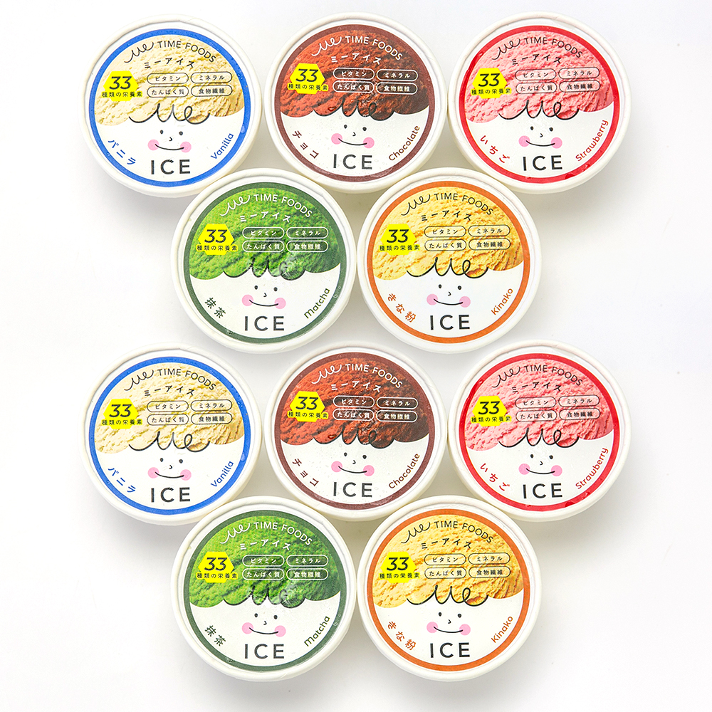 「Me ICE(ミーアイス)」は、ビタミン・ミネラル・食物繊維など、33種類の栄養素をぎゅっと詰め込んだアイス。毎日の食事だけでは不足しがちな栄養の補助として、おやつやデザートにお召し上がりください!