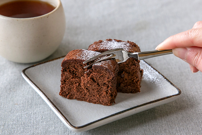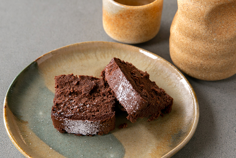 旬の果物をはじめ、厳選した地元食材を使った商品を手がける「旬果甘味店 ルコト」。今回は、小麦粉や乳製品を使用せずにつくった「酒粕ショコラテリーヌ」をご紹介します。もちろん酒粕は、県内の酒蔵から仕入れたもの。口に運ぶと、酒粕の華やかな香りがふわっと漂い、カカオのコクが口いっぱいに広がります。冷凍でお届けするため、解凍してお召し上がりください。日本酒やワインに合わせて楽しめる、大人のためのデザートです。