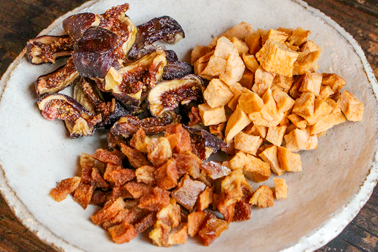 ドライフルーツから手作りします 農家さんから仕入れる果物を使用