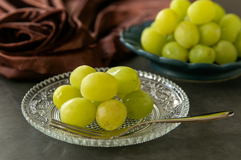 自然の恵みをたっぷり受ける露地栽培で手間暇かけて育てた、濃厚な甘みが魅力のシャインマスカット。今回は夕食後のデザートとして、秋の夜長に堪能しました。