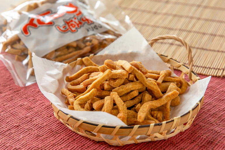 日本一の大きさを誇る離島として知られる佐渡ヶ島。日本海で水揚げされる海の幸や、四季の恵みを活かした山の幸などが豊富で、独自の食文化が根付いている。そんな佐渡市で、長年親しまれている郷土菓子が「手造りかりんと」。相川地区にある製麺所「ワダコメ」が手がけるかりんとうだ。「高校時代からずっと食べている」「帰省のたびに買って帰る」など、島民にはお馴染みのお菓子。特徴は、何といってもその硬さ。馴染みのない人が口にすると、「かたっ!」と、驚かれるほどの歯ごたえだ。代表・和田徹さんは、「父の代から同じ製法で造ってきたんですが、ある時『お土産でもらったけど硬すぎて食べられない!』というクレームが入ったんです。ずっと親しんでくれている地元の方のことを思うと、この硬さは変えられない。だから、パッケージに『かたいです』という注意書きを入れるようにしました」と笑う。今では、「硬いかりんとう」としての知名度が上がり、島外にもファンを持つほどに成長。「素朴な味わいで美味しい」「噛めば噛むほどに甘くて大好き」など、懐かしさを感じるクセになる美味しさで人気を集めている。