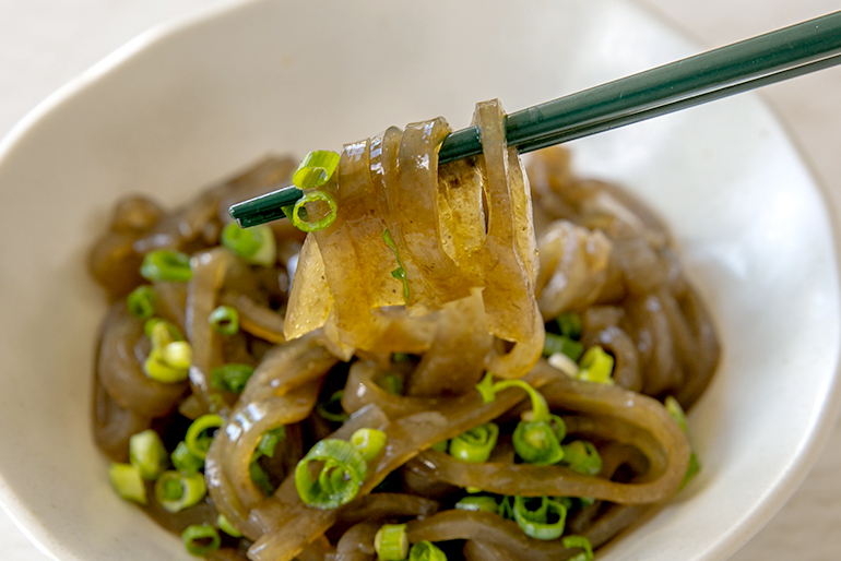 見た目も涼やかで美味しそうですね。ツルッ……。う~ん、磯の香りが広がりますね~。さっぱりとしていて美味しい!ツルツルとした口当たりですが、しっかりとした歯ごたえがあって、満足感がありますよ。