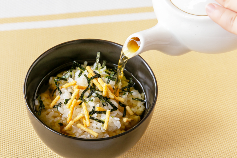 夏場は、冷たい番茶をかけて「冷やし茶漬け」にするのもおすすめです!