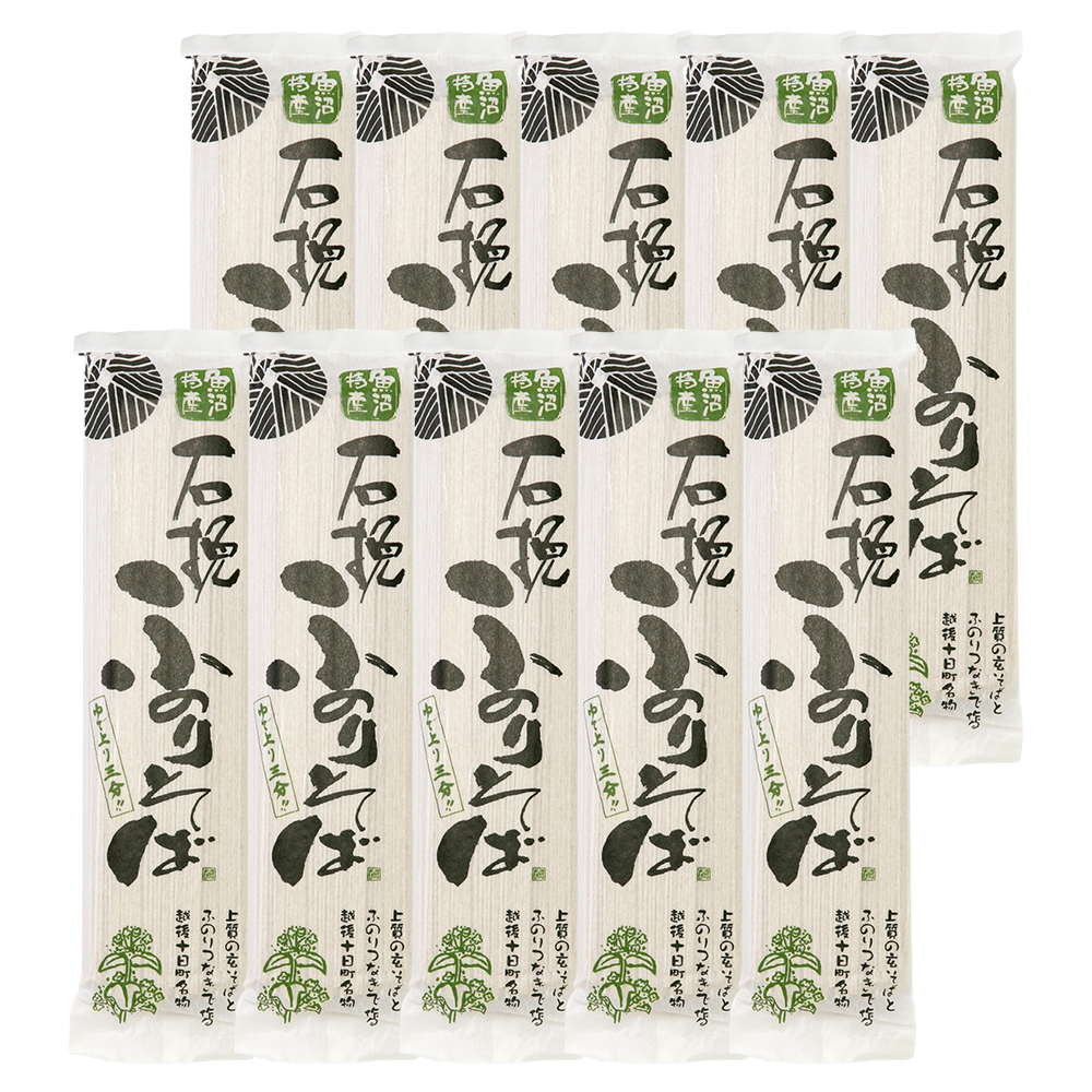 十日町産の香り高いそばの実で作った乾麺。「布海苔」という海藻をつなぎに使用することで、ツルッとしたのど越しに仕上げています。丁寧にギフト包装してお届けするため、贈り物としても喜ばれますよ。