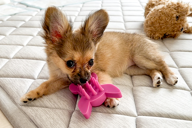 「うちの子ゴロン」は、家族の一員であるペットと穏やかな時間を過ごすことをコンセプトに開発された「シャンプー・マッサージブラシ」。持ち手部分はペットそのものの形を精巧に再現した上で、握りやすさも重視したデザインだ。ポメラニアン・パグ・チワワなど、さまざまな犬種をラインナップしており、「部屋に並べて置くだけで癒しのインテリアになる」と評判だ。「オールシリコンゴム製のため、毛の少ないお腹周りもやさしくブラッシングすることができます。商品名は、気持ち良さそうにゴロンと寝そべる仕草から名付けました」と、代表・田村利行さん。シャンプーが苦手なペットでも傷付けることなく安心して使えて、頭皮マッサージなどの日常ケアにも最適なアイテムだ。「日々のブラッシングを通して、ペットと飼い主が心をつなぎ、穏やかで温かい時間を過ごしてもらいたいです」と、田村さんは語る。