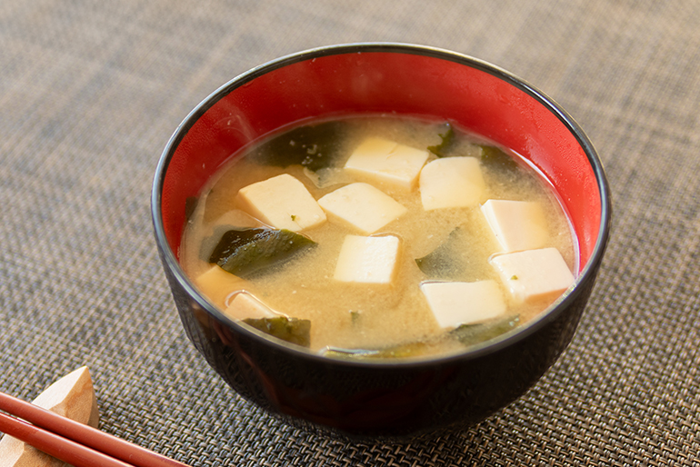 「渋谷みそは、お湯に溶けやすいため、味噌汁にぴったり!クセがなくてどんな食材にも合いますよ~」と、渋谷さん。さっそく、定番の「別製(こし味噌)」を使って、豆腐とわかめの味噌汁を作ってみました。