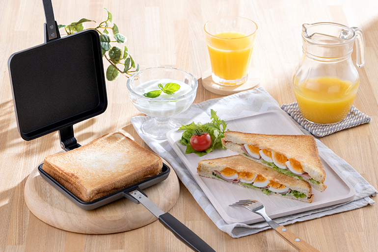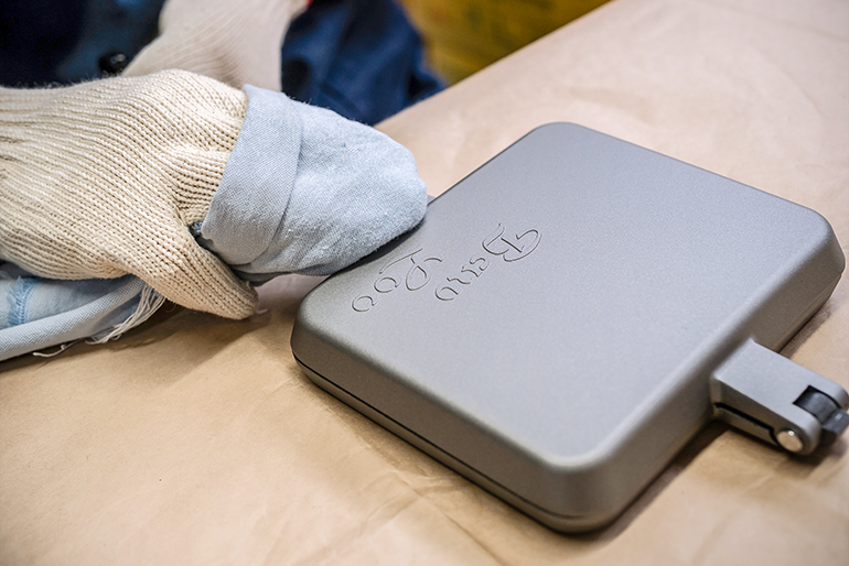 田巻金属の代表製品のひとつであるサンドイッチトースター「BawLoo(バウルー)」は、発売から50年以上、家庭でのホットサンド文化を支えてきたロングセラー製品。バウルーの本体はアルミダイカスト鋳造、ハンドルは圧縮成型という製造方法を採用しており、耐久性と高い完成度を実現している。直火式の高熱伝導とフッ素樹脂加工による焦げ付き防止は、燕三条の金属加工技術が生み出した性能だ。祖父母の代から孫まで、三世代にわたって使用されることも珍しくないといい、単なる調理器具を超え、家族の記憶や思い出に結びつくヘリテージ製品としての価値を持つ。バウルーの普遍的なデザインと信頼性は、田巻金属のものづくり精神を象徴し、企業の技術力と歴史の裏付けとなっている。