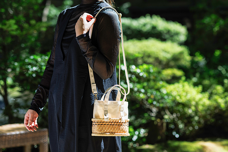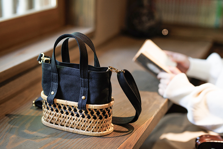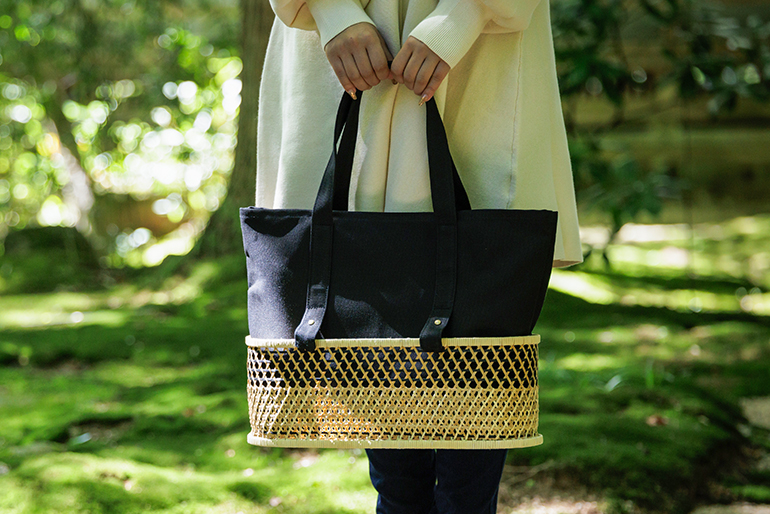 竹籠と帆布が出会ったトートバッグ「ふたえ籠」