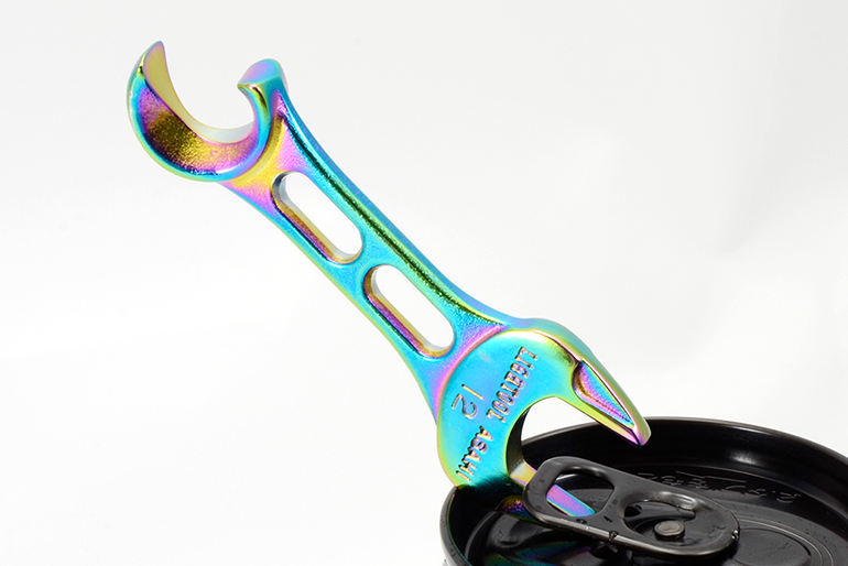 旭金属工業の創業は1931(昭和6)年。大阪府大阪市で、配管の接続部品である鉄管継手を扱う「宮野商店」が始まりだ。戦後は、六角ボルトやナットを締め付けたり、取り外したりする際に用いる工具「スパナ」の専門商社へと転向。さらに、製造部門を立ち上げることで全国へと販路を広げ、メーカーとしての土台を築き上げた。大きな転換期は1982(昭和57)年。経営の拠点を大阪から、現在本社を置く燕市へ移した。選んだ先は、江戸時代から「和釘(わくぎ)」作りなどを通じて、金属加工の技術に定評がある地域。熟練の職人技と、自社の製造機能を融合させることで、より理想に近い道具作りを追求した。高精度な熱間鍛造技術を駆使し、レンチやスパナ、特殊工具などを製造。自動車や産業機械など幅広い分野の作業を支え続けている。また、専門性の高い道具だけではなく、日常的に使えるアイテムも展開。スパナをかたどった栓抜き「スパナ型ボトルオープナー」は、ユニークなデザインで贈り物にも選ばれている。