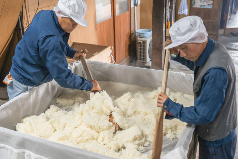 恩田酒造では、米本来の旨味を活かした伝統的な酒造りを受け継ぎながら、新しい価値を提供する「面白い日本酒」造りにも注力。地元の名物「栃尾の油揚げ」とのペアリングを想定した本醸造「鶴と油揚げ」など、飲む人や料理に合わせた多様性のある日本酒を手がけている。2025年に誕生した純米酒「出輝(しゅっこ)」は、隣町・出雲崎町のブランド米コシヒカリ「出雲崎の輝き」を100%使用した日本酒だ。「出雲崎で獲れた海鮮に合う食中酒」がテーマで、現代の食卓に寄り添う軽やかさと、フレッシュな香りを追求。一口含めば、華やかな香りが鼻に抜け、その後に米本来の甘みや旨味を感じられる。企画・醸造担当の坂東拓哉さんは、「白ワインのような感覚で、よく冷やしてからワイングラスで飲むのがおすすめ。ワインを思わせるピュアな酸味で、お刺身やカルパッチョなどの魚料理と合いますよ!」と教えてくれた。