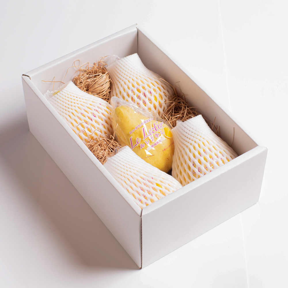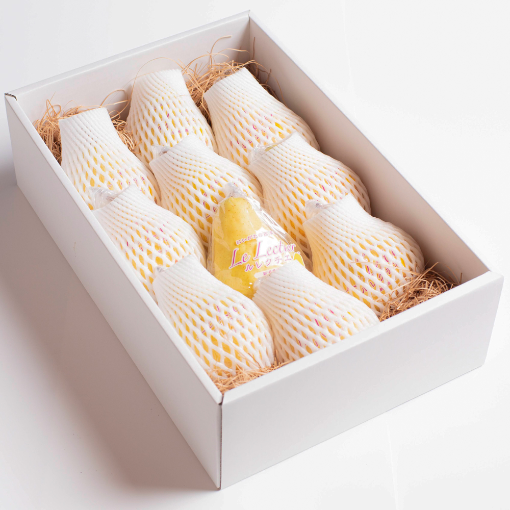 ル・レクチェは、収穫後に「追熟」することで、とろけるような味わいに変化します。佐藤梨園では、一度に食べごろが来てしまわないよう、異なる食べごろのル・レクチェをお届け。およそ4分の1は、届いてすぐに食べごろになるものを入れています。