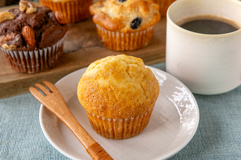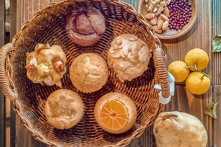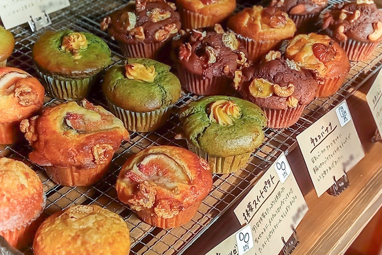 HARUの看板商品のひとつが、季節ごとに表情を変える焼きたてマフィン。春は越後姫や村上茶、夏は藤五郎梅やあんず、秋は村松栗や芋、冬はル・レクチェなど、新潟の恵みを生地にごろごろと焼き込んでいる。ペーストや既製の加工品に頼らず、できる限り旬の素材を自ら仕入れ、下処理から加工までを行うのがHARUのスタイルだ。そのため、他では見かけない組み合わせや、素材同士の意外な相性に出会えることも多い。週替わりで内容が変わるため、同じ味に再び出会えるとは限らないのも、このマフィンの魅力のひとつだ。
