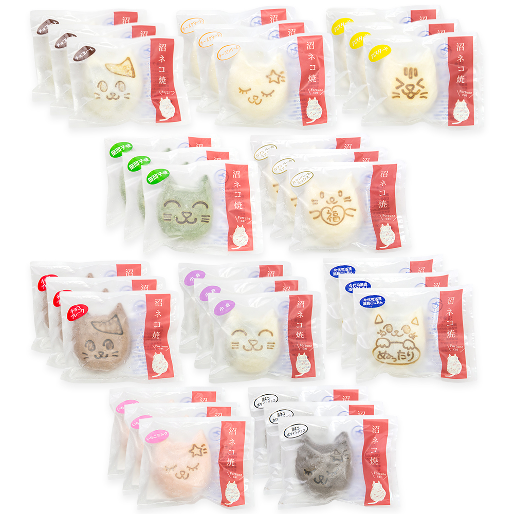 いちごみるく、抹茶クリーム、チョコバナナ、ずんだ餡、さつまいも&チーズ、渋皮入りマロン、北海道かぼちゃ、黒ネコホワイトチョコなど