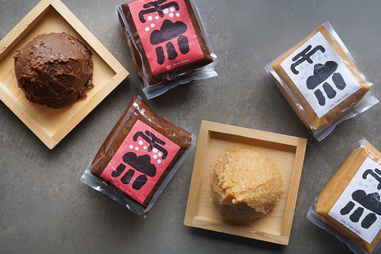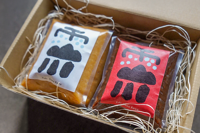 看板商品である「雪山川(ゆきやまかわ)」シリーズ。新潟を囲む山々に降り積もった雪が溶けて川となり、田畑を潤して、やがて人々の暮らしへとつながっていく。そんな雪国の豊かな自然が育んだ素材から生まれた味噌だ。長岡で受け継がれてきた食文化を大切に守りながら、今の食卓に似合うモダンなパッケージへと整えている。なかでも「熟成コシヒカリ玄米みそ」は、柳醸造が誇る玄米麹の技術と歴史が詰まった逸品。白米の麹に玄米を足すのではなく、100%玄米だけで麹を起こすという、手間暇のかかる伝統の技を貫いている。こうして引き出された玄米ならではのまろやかなコクが、雪国の豊かな恵みを感じさせる奥深い味わいを生み出している。
