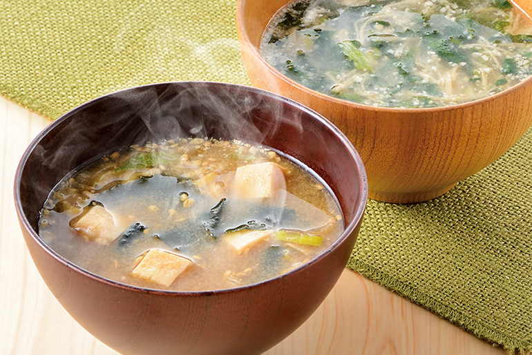 「熟成コシヒカリ玄米みそ」でさっそくお味噌汁を作ってみると、お湯に溶き入れた瞬間、お鍋からフワッと立ち上る香ばしい香りにぐっと食欲がそそられます。